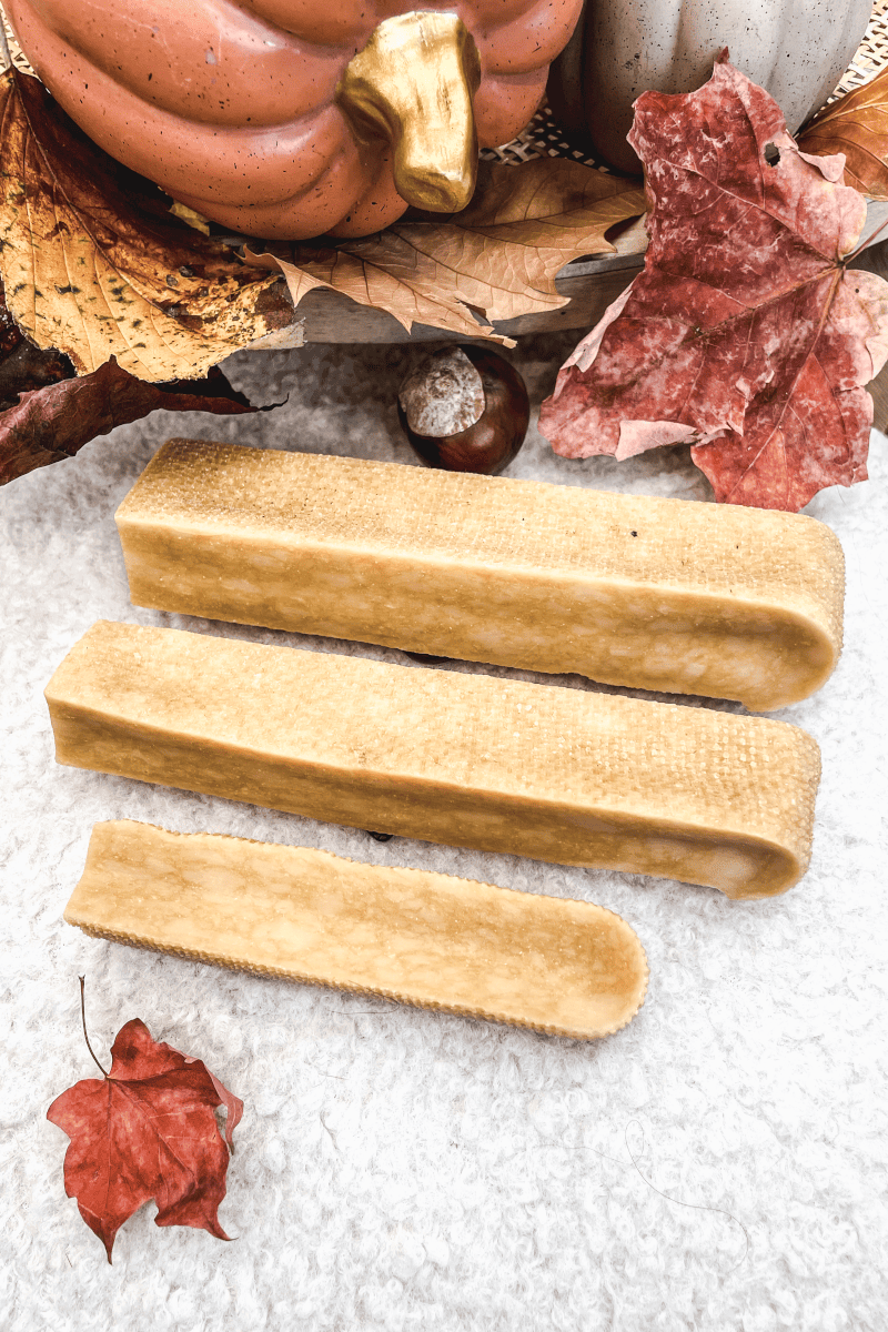 Envie de revisiter un classique de la mastication naturelle pour votre chien ? Le fromage de yak à la citrouille saura toujours répondre aux besoins de dépense mentale de votre loulou, avec quelques bienfaits gourmands en plus ! La citrouille est considérée comme un superaliment pour chien. En effet, elle permet de renforcer le système digestif de votre toutou, grâce à sa richesse en fibres et vitamines. Bien évidemment, ces délicieuses barres à mâcher agissent toujours en tant que brosse à dents naturelle pour lutter contre le tartre et la mauvaise haleine.